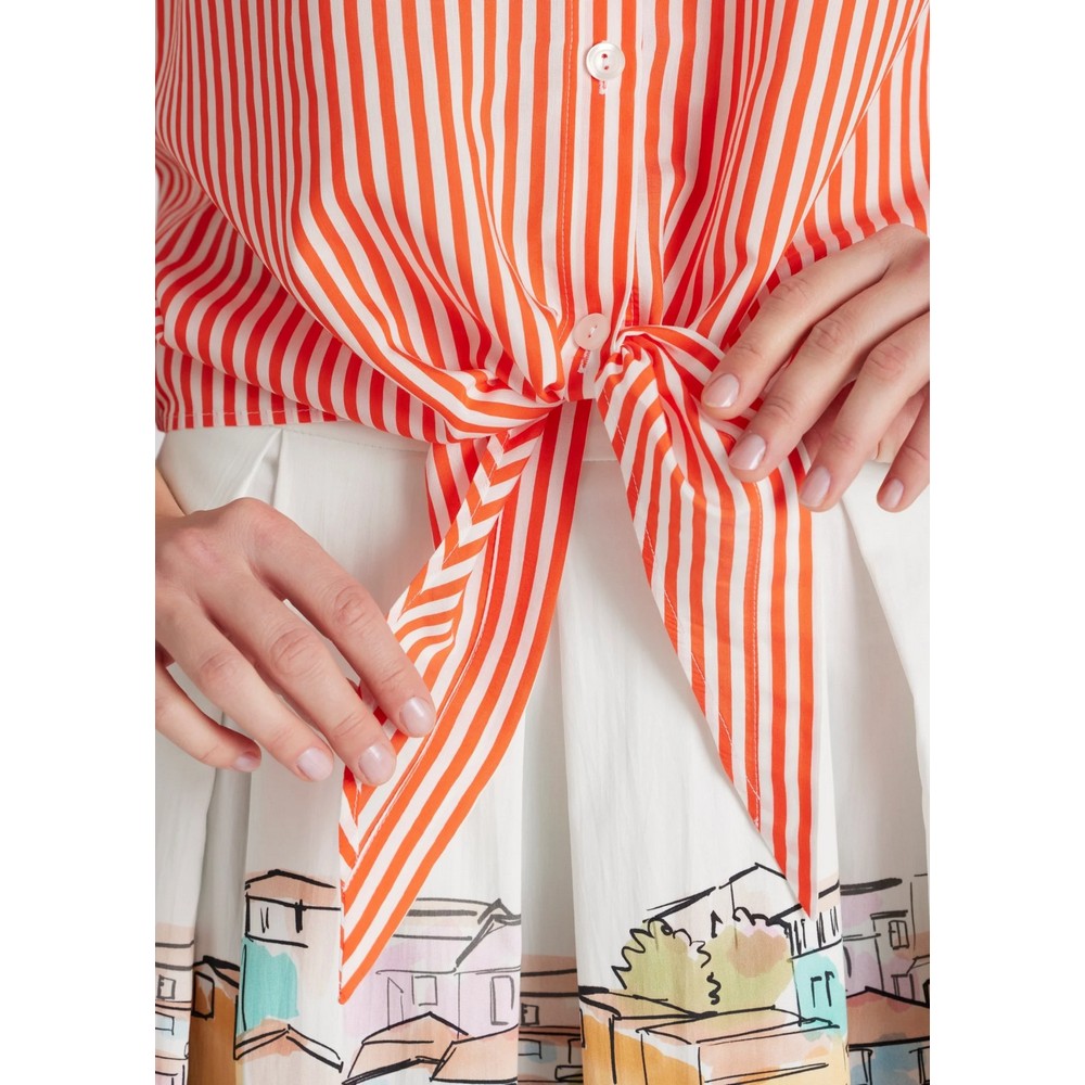 Details: feminine gestreifte Bluse mit Bindedetail