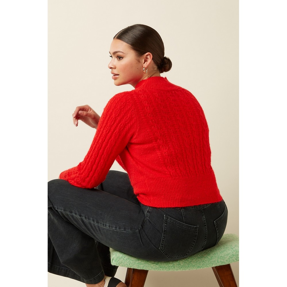 Details: femininer Ajour Pullover mit kleinem Stehkragen