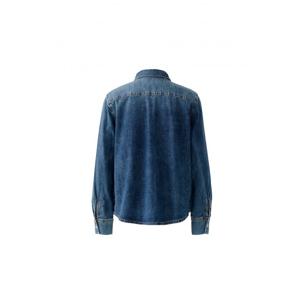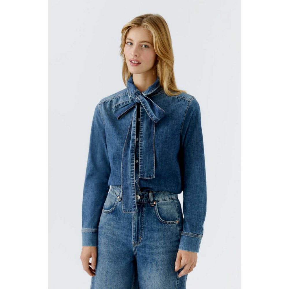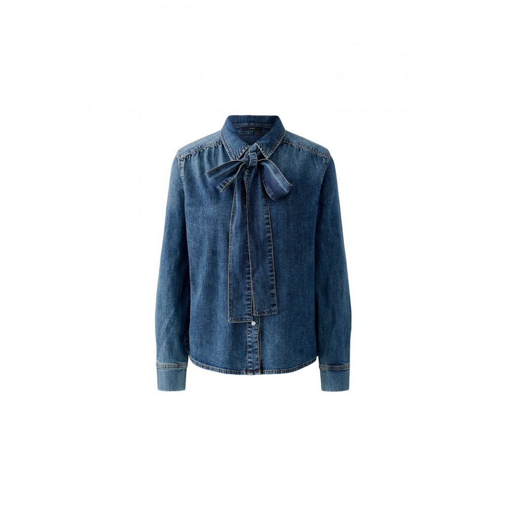 Oui 96069 Denim Bluse mit Schleife dark blue denim