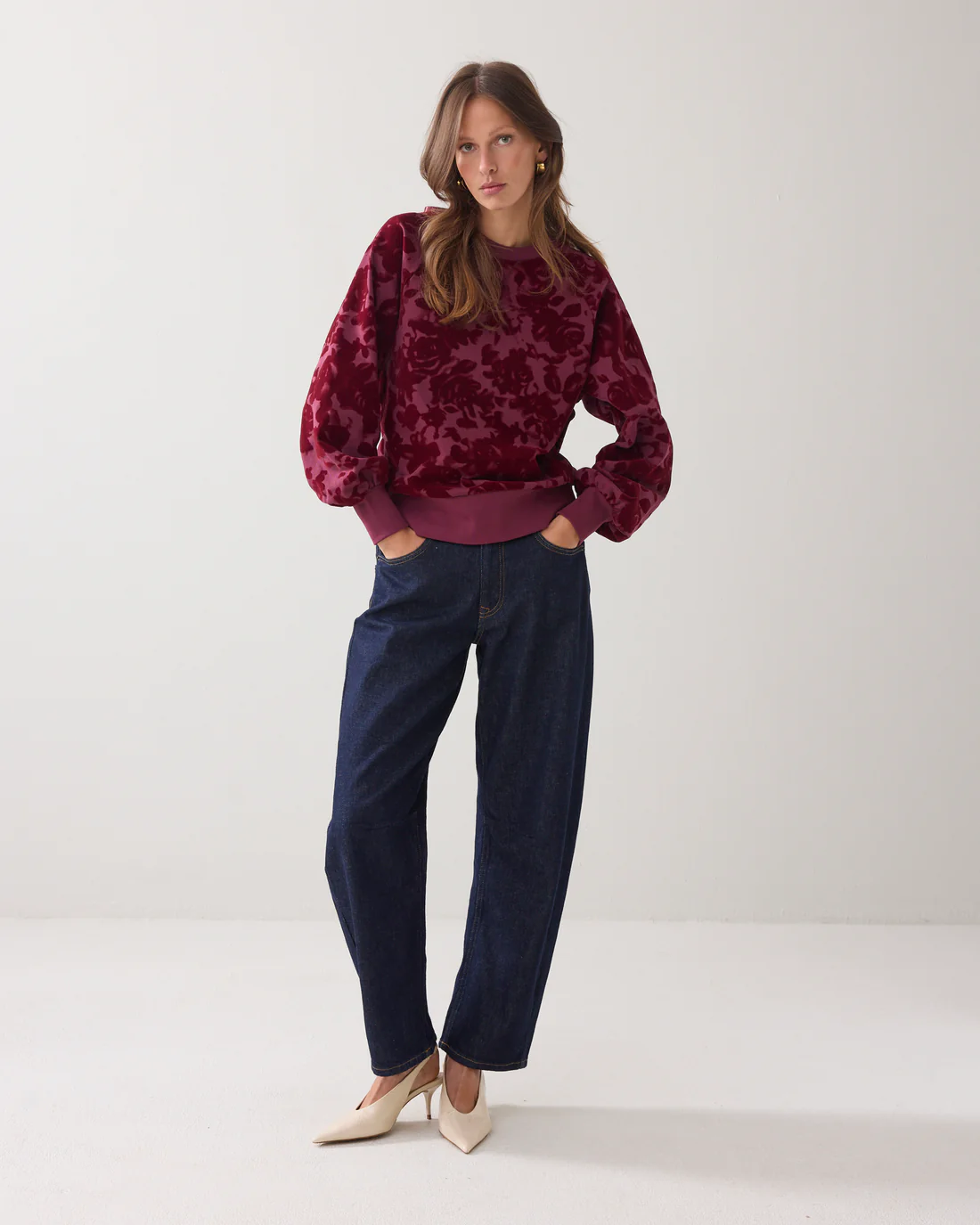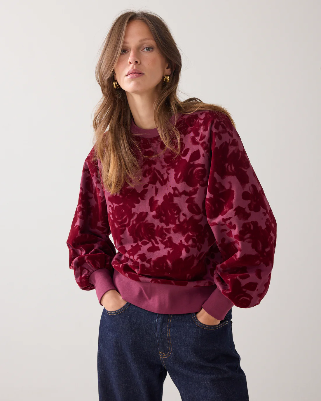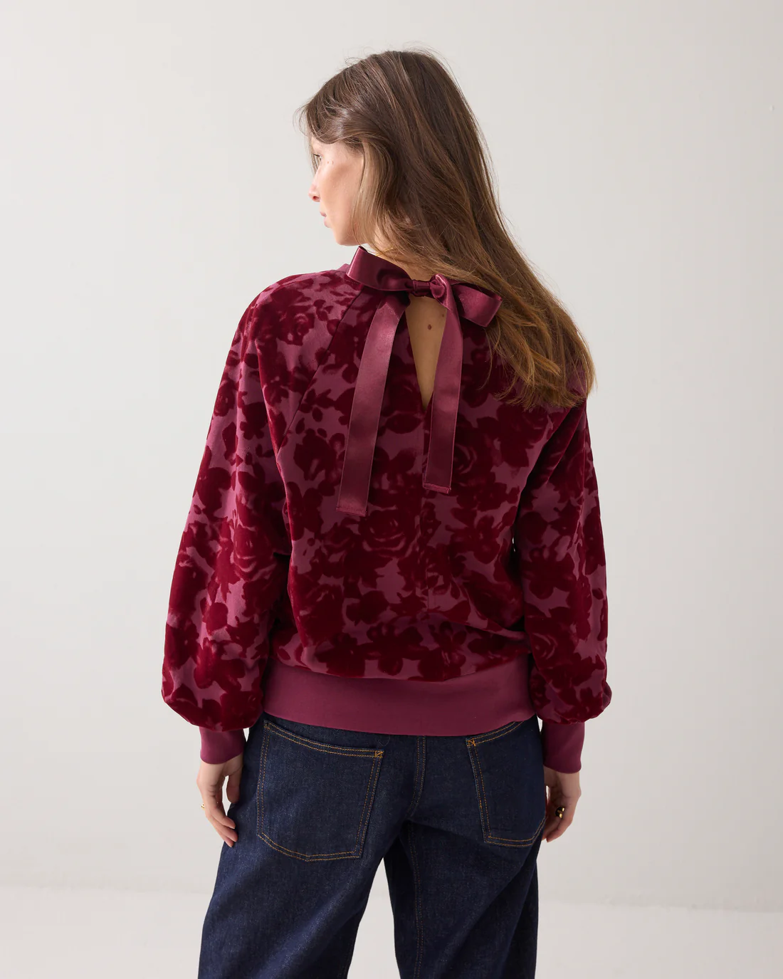 Details: Sweatshirt mit Raglanärmeln und farblich abgestimmtem Velours-Blumenprint