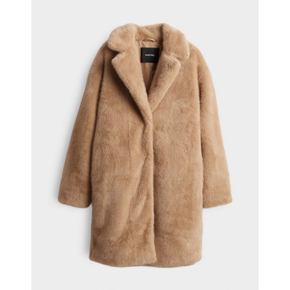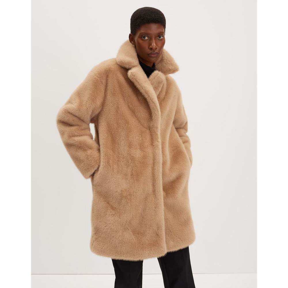 Details: Der wattierte Mantel aus glattem Fellimitat zeigt sich in ovaler Cocoon-Silhouette und bietet soften Komfort an winterlichen Tagen