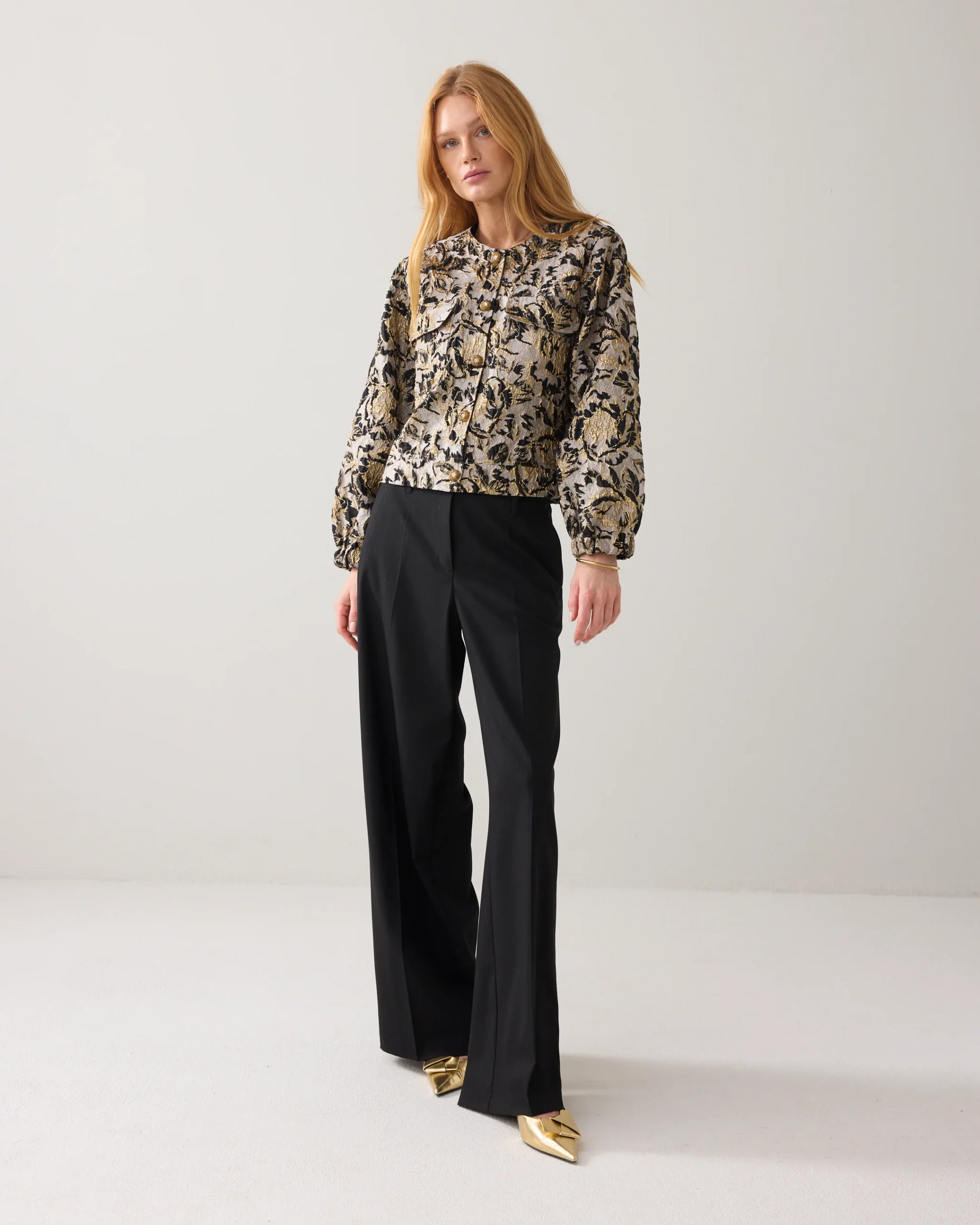 Details: gefütterte Jacke mit Boxy Fit, aus glänzendem Jacquard mit Barockmuster und fancy Knöpfen