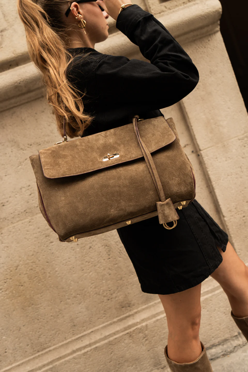 Melvin & Hamilton Tasche Matera Suede Pattini Taupe